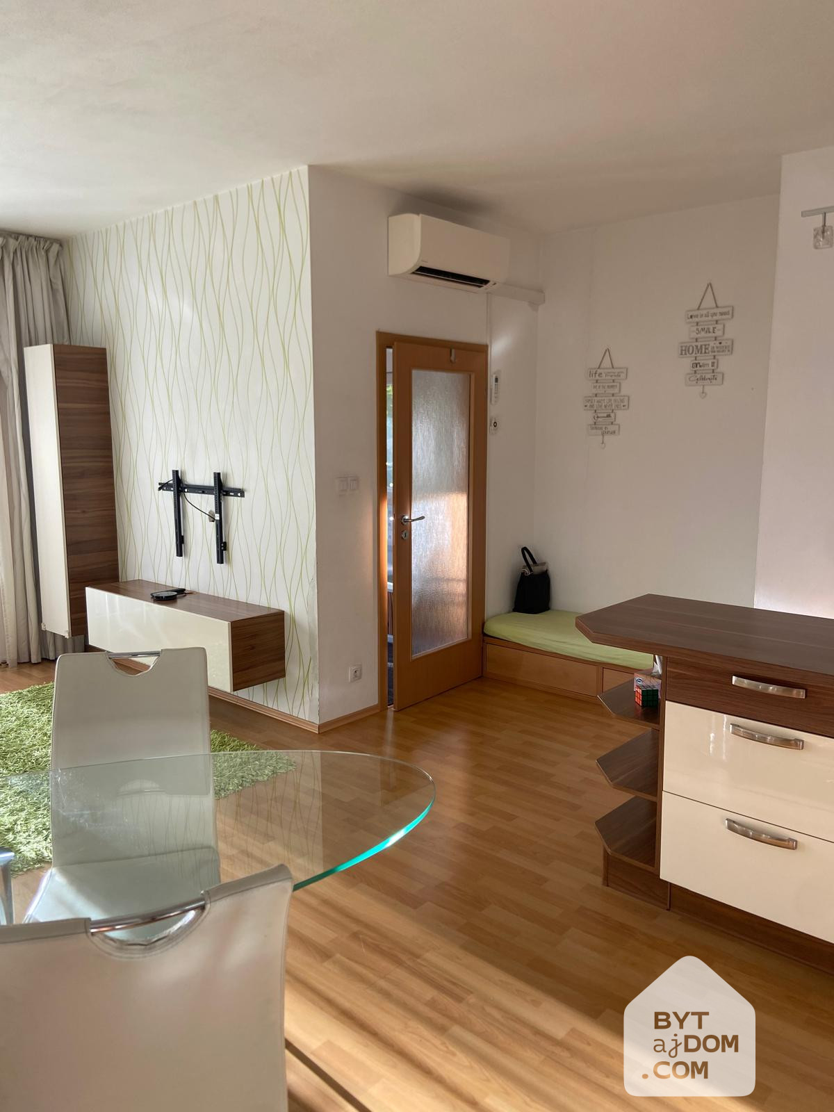 Apartmán predstavuje plnohodnotný 3-izbový byt, dispozícia zahŕňa vstupnú halu, obývaciu izbu-štúdio, dve spálne, kúpeľňu, samostatné WC a terasu.